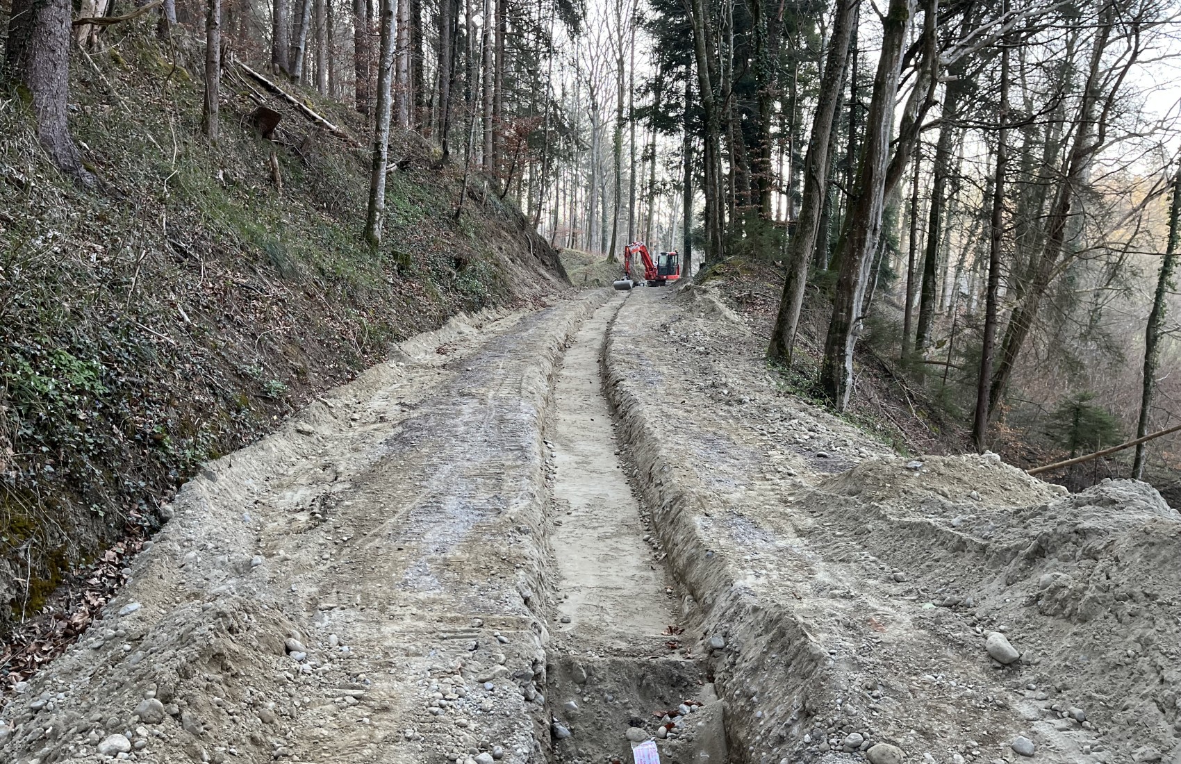 Die EKS erneuerte das Stromtrasse ab Hemishofen bis zum Schienerberg.Auf Schweizer Gemarkung führten wir die Werkleitungsarbeiten von 2 Losen aus mit einer Länge von 2200m
