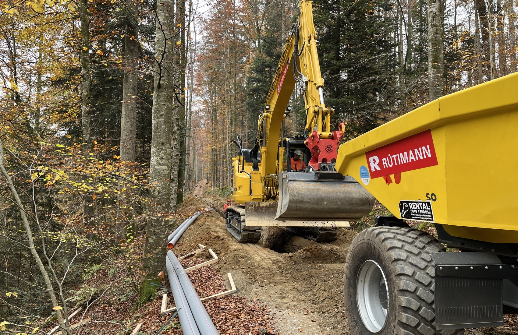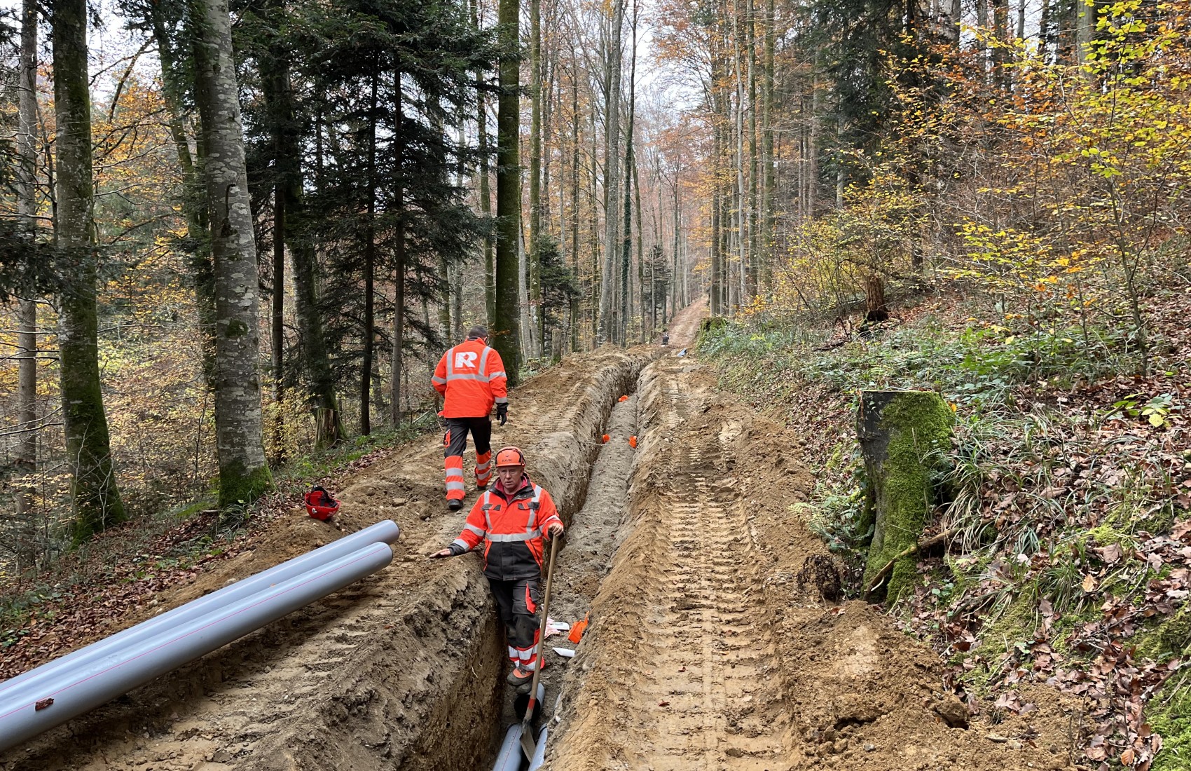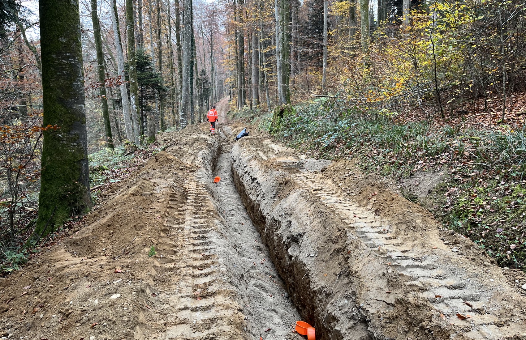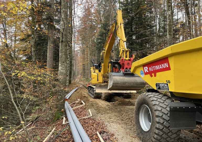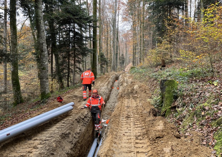 Die EKS erneuerte das Stromtrasse ab Hemishofen bis zum Schienerberg.Auf Schweizer Gemarkung führten wir die Werkleitungsarbeiten von 2 Losen aus mit einer Länge von 2200m